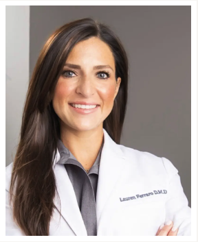Dr. Lauren Ferraro discovered she was passionate about dentistry after suffering from an injury that caused dental trauma. She experienced first hand the extraordinary capabilities of dentistry and decided to commit her career to a standard of excellence in the field. Dr. Ferraro now finds great fulfillment in helping patients rediscover their self-confidence through a beautiful smile. She puts emphasis on creating a comfortable experience for patients with a gentle hand and open communication. Dr. Ferraro earned a bachelor of science in human physiology at Rutgers University, where she graduated Cum Laude, and a Doctor of Dental Medicine from Rutgers School of Dental Medicine in 2017. She completed a General Practice residency with New York Medical College at St. Joseph's Regional Medical Center, where she received extensive training in head and neck trauma as well as in IV sedation and complex and cosmetic dentistry. She has also performed full mouth rehabilitations for special needs patients under general anesthesia. Committed to offering her patients a wide range of services, Dr. Ferraro continues to refine her skills in all areas of dentistry. She completed training in general orthodontic treatments and functional orthopedic appliance therapy with Pace University. She is also certified by the American Academy of Facial Esthetics to administer Botox for dental esthetics and TMJ therapy. She has had tremendous success in therapeutically treating patients experiencing pain from TMJ disorder, chronic headaches, clenching and grinding. She has also completed various trainings in endodontics and is proficient in performing root canals. Dr. Ferraro and her husband, Chris, live in Morris County, where they are parents to a beautiful baby girl and a loving dog. In their free time they enjoy hiking, biking around town, or catching a Broadway show. Dr. Ferraro is passionately devoted to her family, and to providing exceptional dental care to her patients.